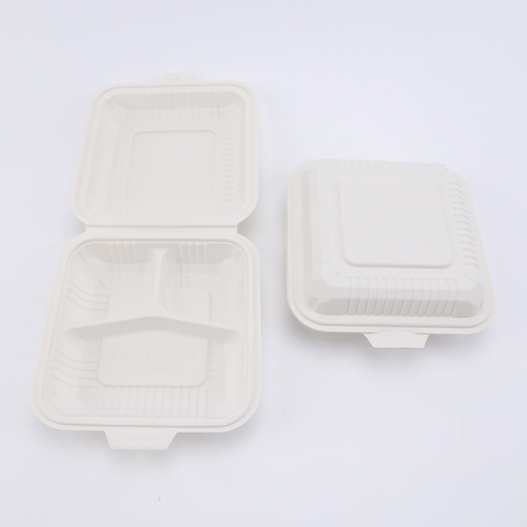 900ml 30OZ 8x8 Caja 3 Compartimentos Caja de comida Contenedor de comida biodegradable