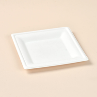 Plato cuadrado de 6 pulgadas plato de caña de azúcar blanco de pulpa de bagazo compostable desechable para fiestas y eventos